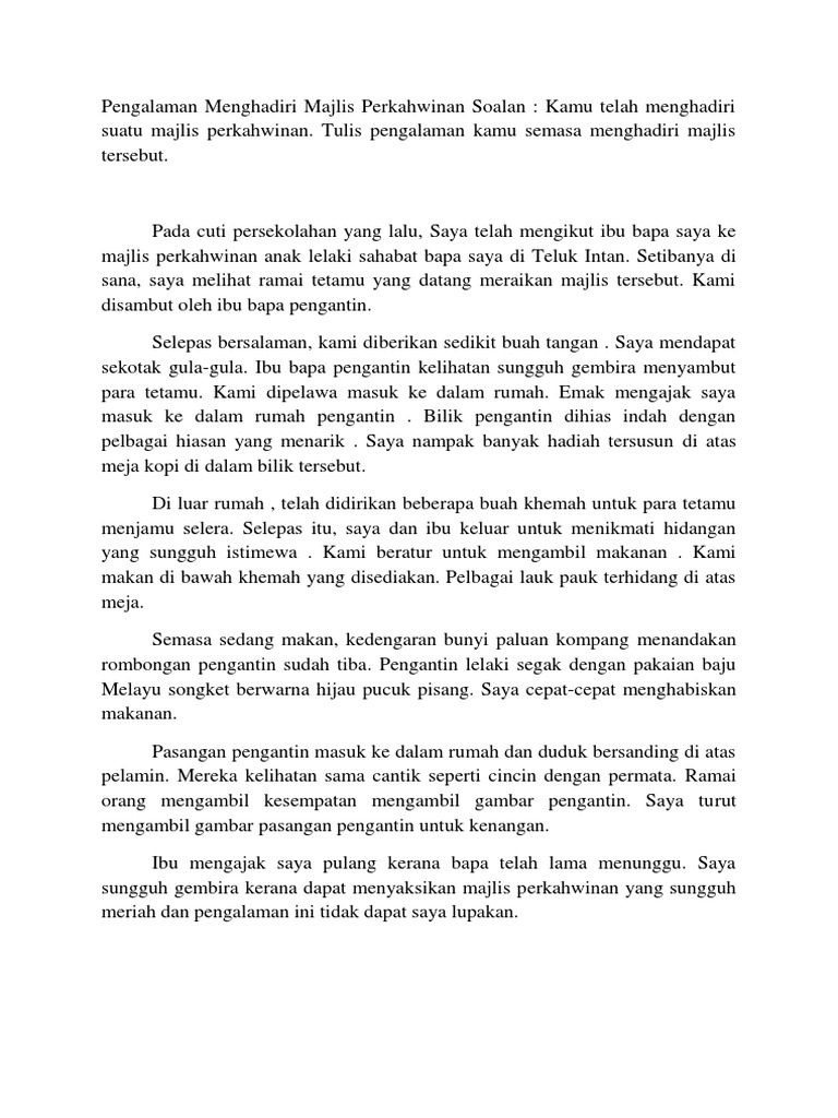 Karangan Keperihalan Pengalaman Menghadiri Majlis Perkahwinan Pdf
